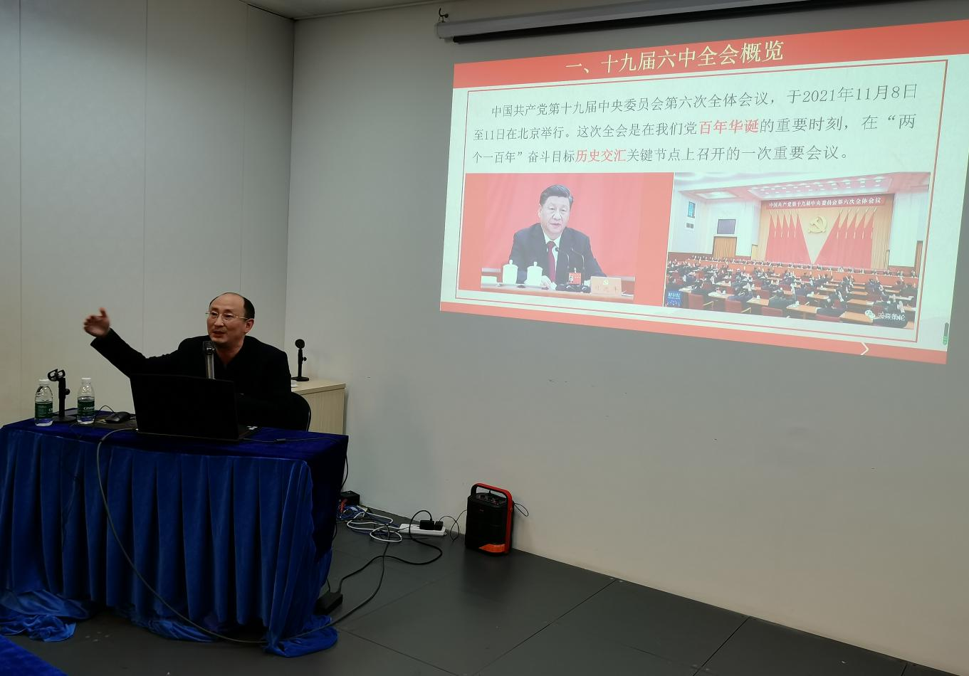 為豐富公司的黨建工作及企業文化建設,公司于2月18日下午在總部會議室成功舉辦了第十七期期“聚賢會”互動交流講堂活動。本次“聚賢會”是以黨課的形式開展學習十九屆六中全會精神的講堂活動,主題為“總結百年大黨寶貴經驗、推進中華民族偉大復興,解讀十九屆六中全會精神”。 本期活動邀請到的是廣西民族大學譚元敏教授蒞臨我公司授課,他用生動的語言、精彩的PPT演示,使“聚友”們對黨的十九屆六中全會精神有了更深刻的理解。