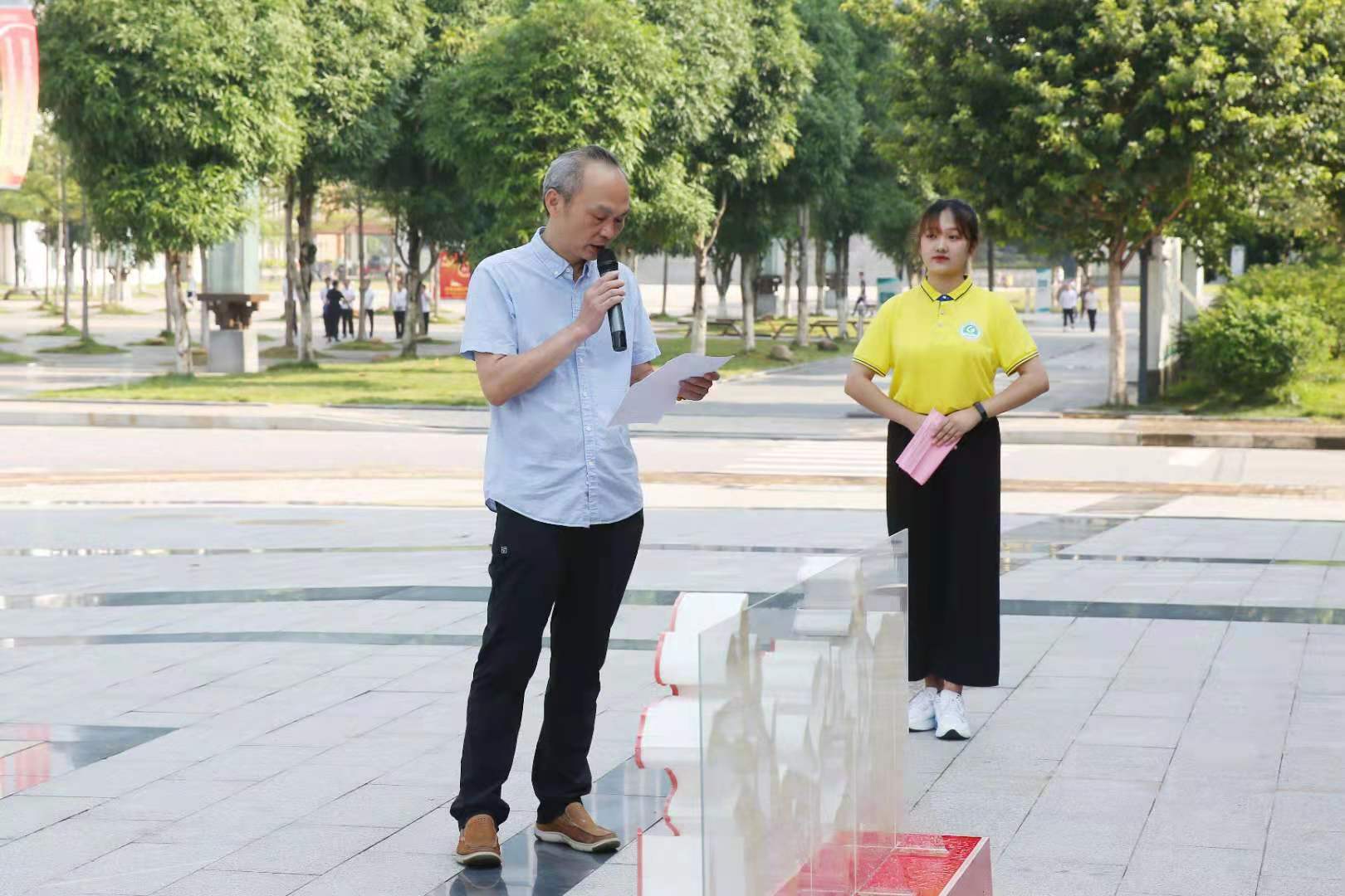 王燕蓉書記在出征儀式上講話 我公司副總經理黃藝在出征儀式上發言,他對同學們提出三點希望,一是要提高認識、勇于擔當責任,積極參與組織開展符合實際的、有“建院特色”的志愿者服務項目,不斷豐富和創新活動載體,切實擔當起組織者、引導者和實踐者的三重責任,全力推進志愿者活動的深入開展;二是要把志愿者服務做實、做真、做到位,讓更多人從我們的志愿服務中收益;三是要弘揚奉獻、友愛、互助、進步的青年志愿者精神,堅持和祖國同行、為人民奉獻,以青春夢想、用實際行動為實現下一個百年的奮斗目標作出更大貢獻。